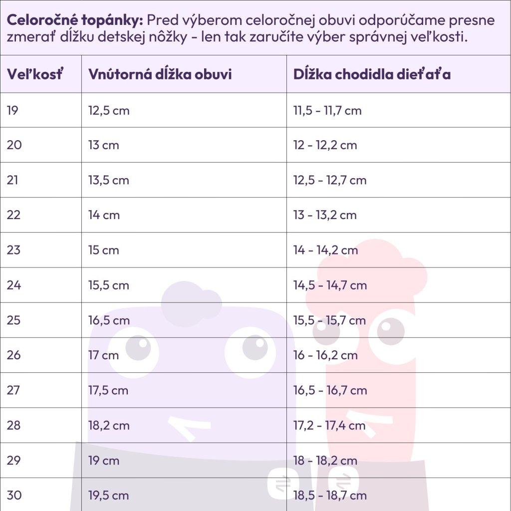 Dĺžka chodidla dieťaťa |
