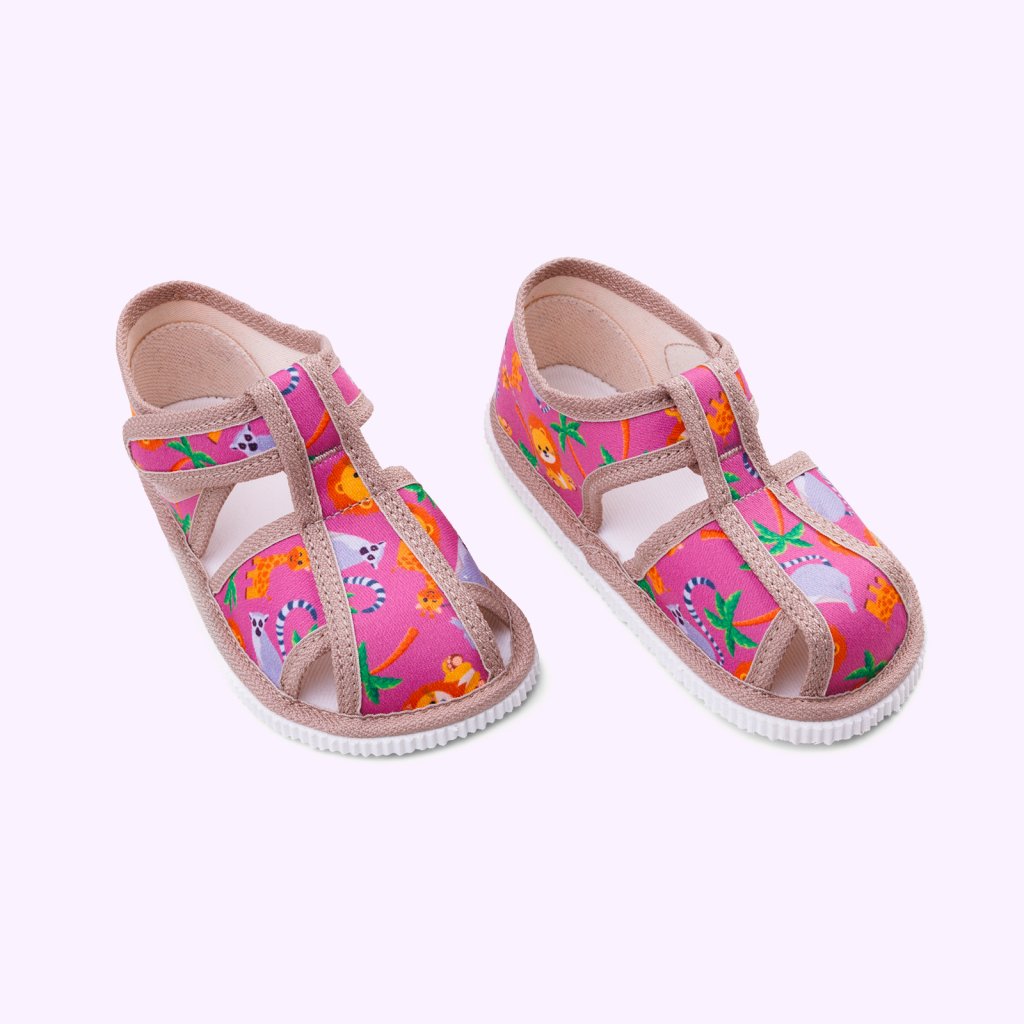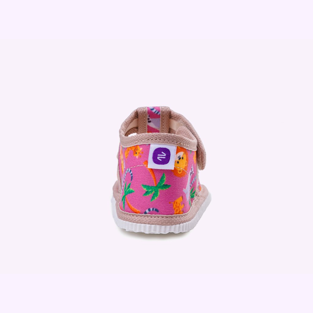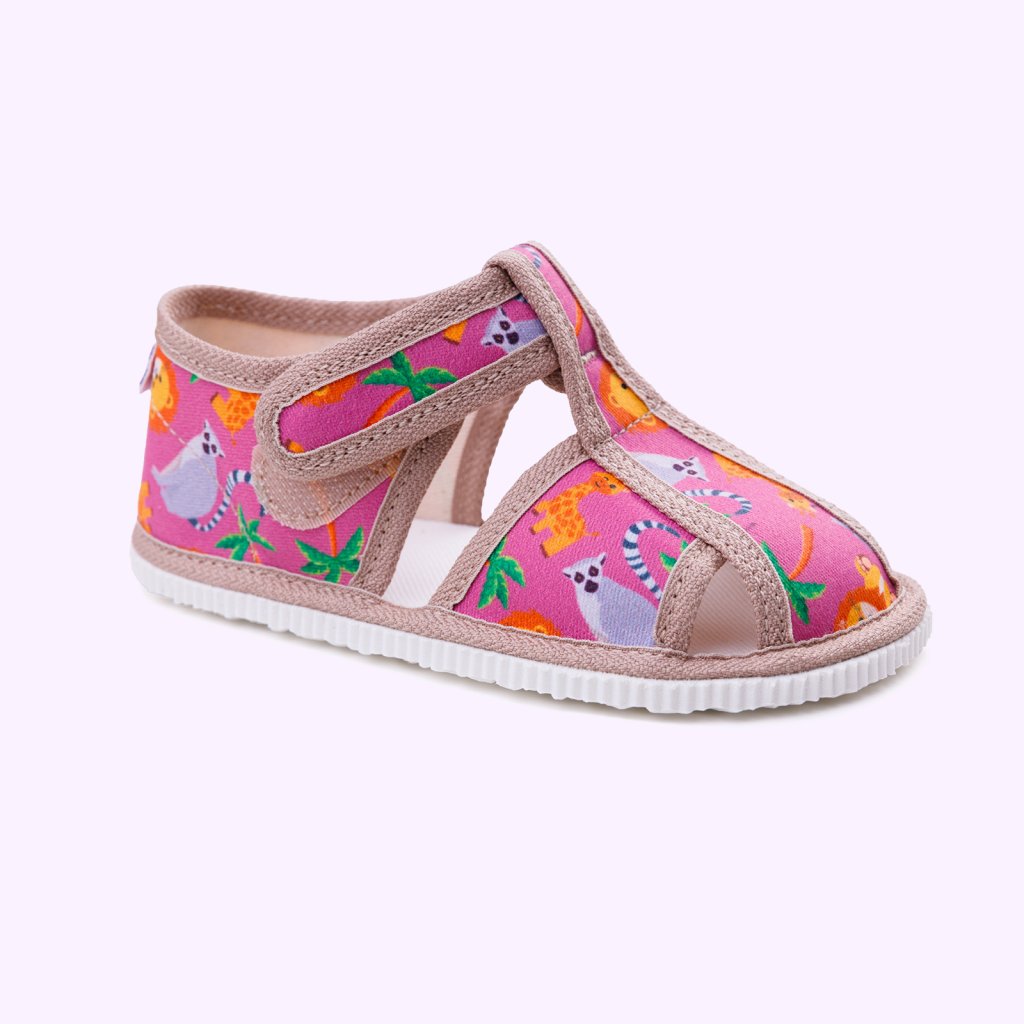 Kvalitné textilné spracovanie šetrí detskú pokožku a 100% bavlnená stielka s jemnou podporou klenby prispieva k správnemu postaveniu chodidla. Gumená podrážka s jemným podpätkom zabezpečuje stabilitu a lepšie tlmí nárazy. Jednoduché zapínanie na suchý zips zvládnu aj tí najmenší.